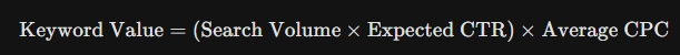 The Traffic Value Formula: While predicting the future in SEO is volatile, stakeholders can estimate potential ROI using keyword data. By analyzing the Search Volume, Cost Per Click (CPC) (as a proxy for commercial intent), and Click-Through Rate (CTR) curves, one can estimate the value of ranking #1.